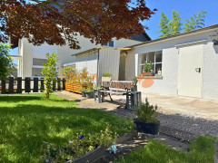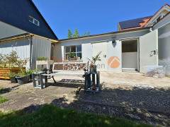 Der Außenbereich überzeugt mit einem pflegeleicht angelegten Garten, einer gemütlichen Terrasse und einem Nebengebäude mit drei Räumen, die sich vielseitig nutzen lassen, zum Beispiel als Hobbyraum, Atelier oder Fahrradgarage. Garage und Carport runden das Angebot ab.