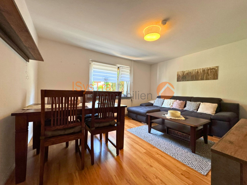 Im Erdgeschoss befinden sich eine moderne Küche mit Essbereich, ein freundliches Wohnzimmer, ein gemütliches Schlafzimmer sowie ein Tageslichtbad mit Badewanne.